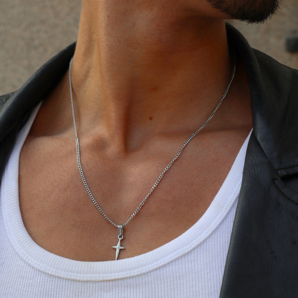 Colar Homem Prateado Cruz Clermont