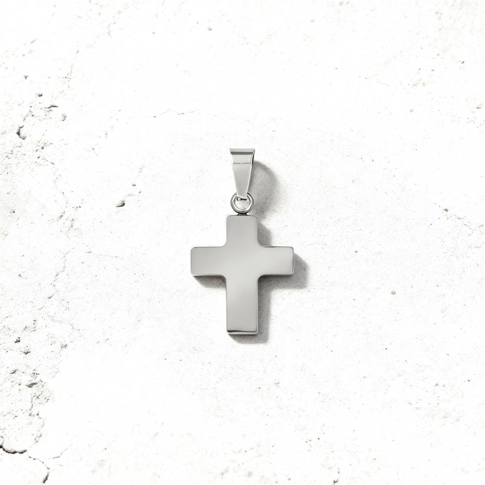O pendente Cruz Burnet é produzido em aço inoxidável antialérgico, ideal para adicionar a um colar da Twobrothers com uma largura máxima de 0,35 cm.