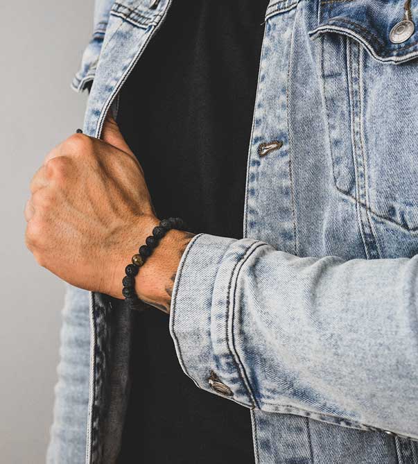 Esta pulseira masculina é composta por pedras naturais vulcânicas, proporcionando um visual único e contemporâneo. As pedras vulcânicas são conhecidas pela sua textura rústica e por simbolizarem força e renovação.