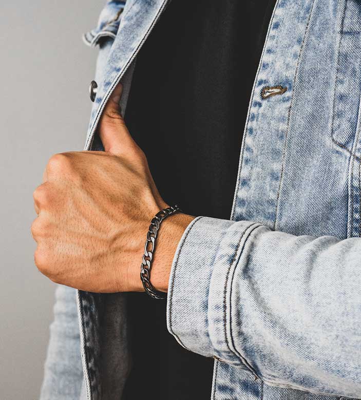 Com um design arrojado e contemporâneo, esta pulseira em aço inoxidável escurecido é perfeita para quem procura um acessório de estilo único e sofisticado. Esta pulseira é uma escolha ideal para quem valoriza o design industrial e quer um acessório com personalidade.