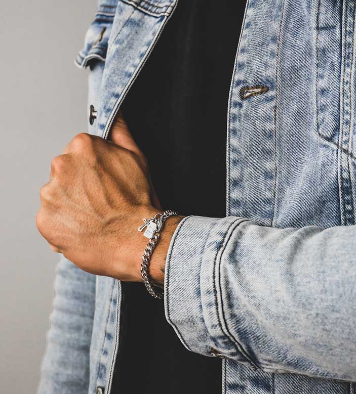 Esta pulseira para homem prateada e com um pendente em forma de cruz, é o acessório ideal para quem procura um look moderno e com um simbolismo de fé e proteção.